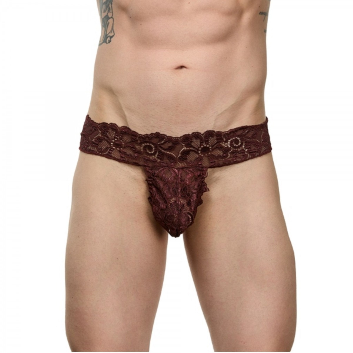 Мужские коричневые кружевные трусы-тонги.