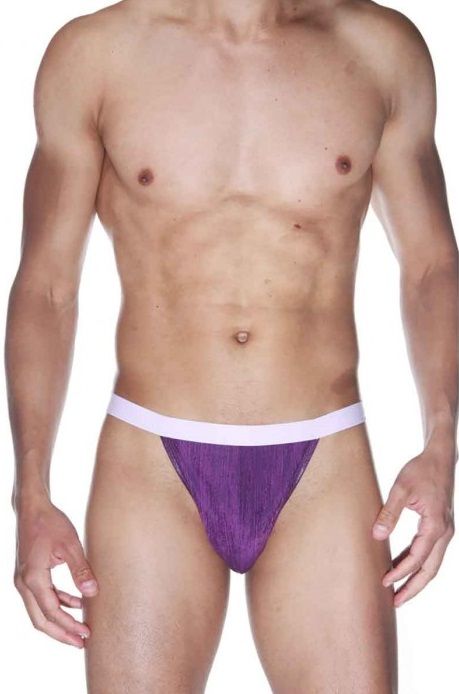 Трусы-тонги на широком светлом поясе.