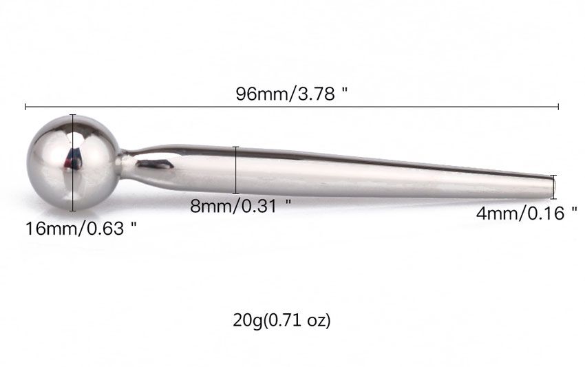 Уретральный катетер для стимуляции уретрального канала. Мужской катетер изготовлен из высококачественной медицинской стали, имеет гладкую структуру. Рабочая длина - 8 см. Минимальный диаметр - 0,4 см. Вес - 20 грамм.