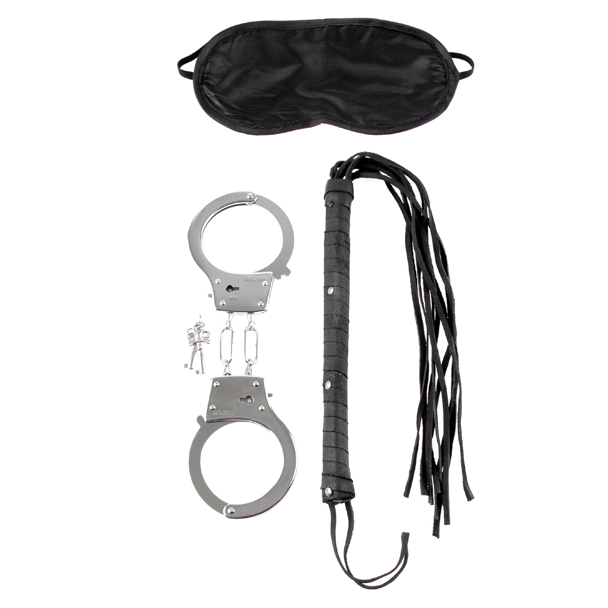 В этом наборе есть всё необходимое, чтобы в сексе зайти чуть дальше обычного. Мягкая непроницаемая маска на резинке плотно обхватит голову, не давая увидеть действия партнёра – можно только почувствовать! Наручники с ключиками не дадут свободы рукам. Чёрная многохвостая кожаная плеть подарит чувственное скольжение кончиков по коже или звонкие удары – до алых полос!