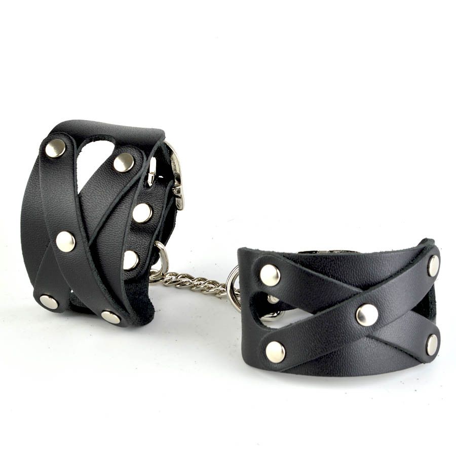 Наручники изготовлены из натуральной кожи. Длина манжет - 25 см, ширина - 4 см.