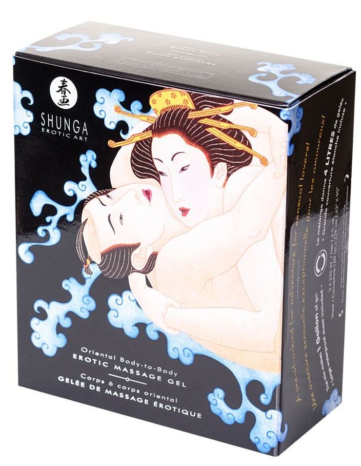 Этот гель с нежной консистенцией и приятным ароматом создан специально для массажа… тело об тело. Расстелите специальную золотистую простынь, чтобы не испачкать кровать. Нанесите немного геля на кожу, а после – потритесь о партнёра. Чувственное скольжение, нежные поцелуи… А ещё осознание того, как быстро в теле любимого растёт сексуальное желание! Да, такую «скользкую» прелюдию вам уже не забыть! Смесь дает 4 литра геля.Большое воздухонепроницаемое покрывало прилагается.