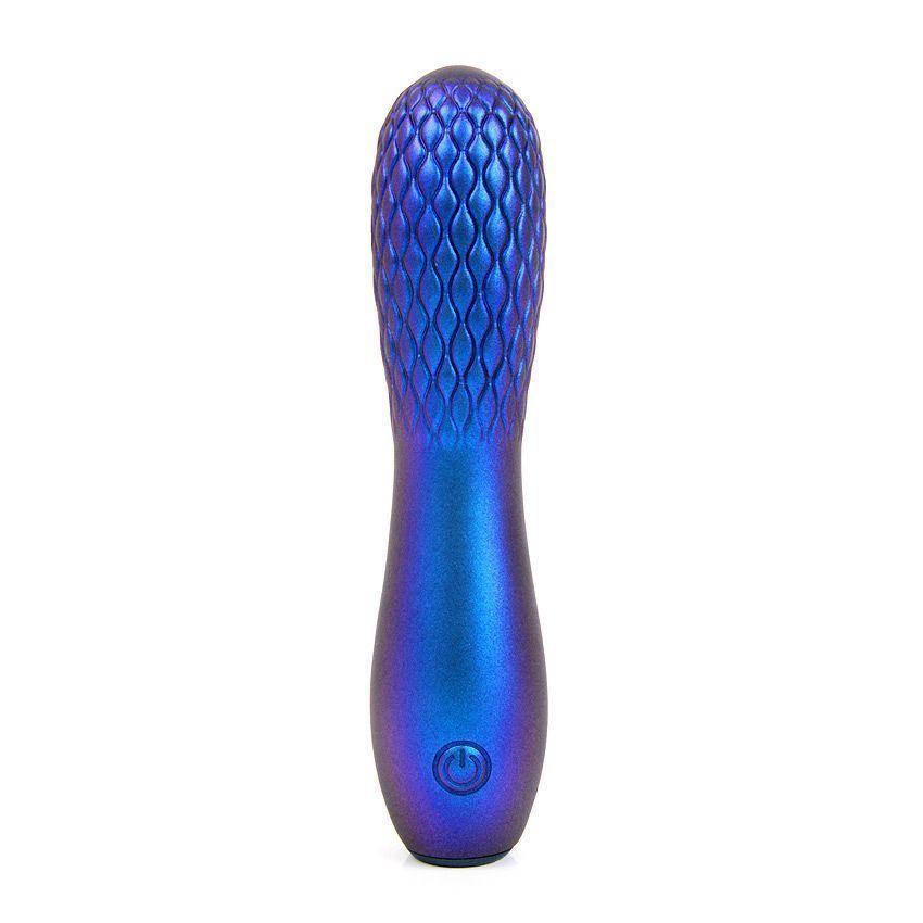 Синий вибромассажер с рельефной головкой. 10 режимов вибрации. Перезаряжаемый.